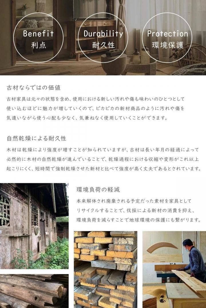 * 商品は長い年月建物等に使用されていた古材を再利用して生産されており、古材のナチュラル感を存分に活かすため