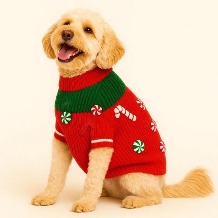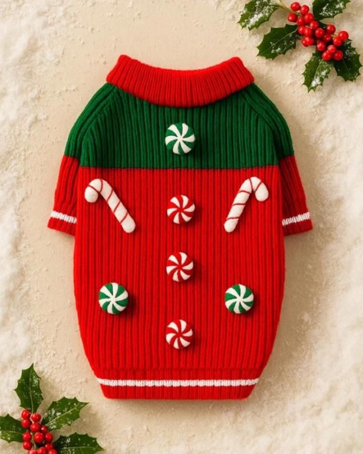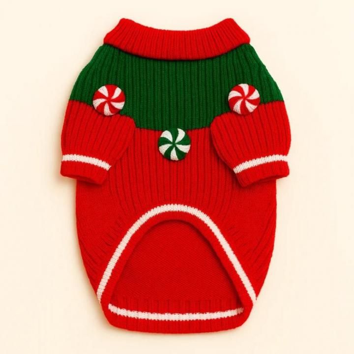 可愛らしいセーターで、赤と緑のクリスマスカラーはホリデーシーズンにぴったりです。